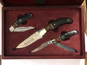 2007 edition winchester 3 piece knife set : The third piece in the set is a decorative metal winchester badge commemorating the 2005 limited edition set. Top rated seller top rated seller. Amazon com gerber 3 pc winchester knife set sports outdoors. Winchester limited edition 2006 set of 3 decorative knives in wood box#228 this trio of knives each have approx 2.3 inch blades and are 6 inches long in total.